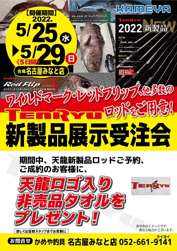かめや釣具 名古屋みなと店 様にて、『TENRYU 新製品 展示受注会』を開催致します。
