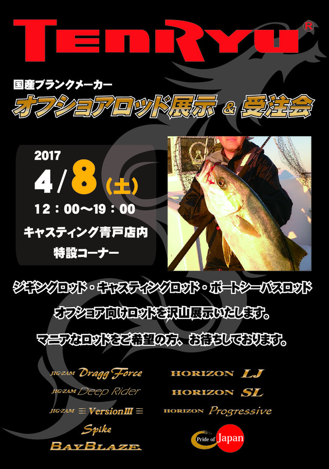 キャスティング青戸店様にて「オフショアロッド展示&受注会」開催します。