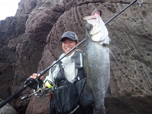 磯際の僅かなスペースしかサラシが出来ない状況でもヒラスズキは確実にいます。