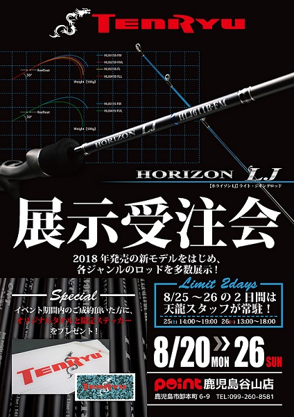 ポイント鹿児島谷山店さまにてロッド展示受注会を開催致しております。