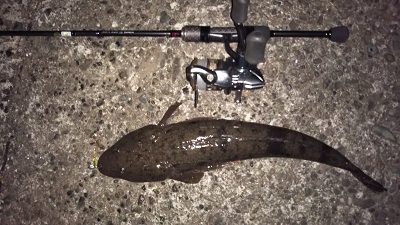 ネットを持っていなく、護岸から一か八かの抜き上げに成功しました。