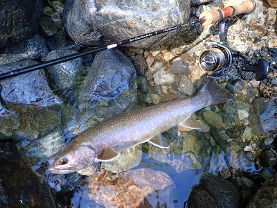 このイワナをキャッチした後、ゴロゴロ鳴り出したので、あえなく退散しました。