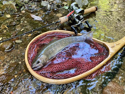 天候のよく渓流日和に尺イワナキャッチ。