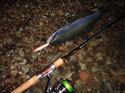 思っていたよりもロッドが曲がって魚をいなしてくれ、捕れた一本です。